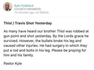 Christian rapper and community activist Travis Tremayne Tyler, also known as, Thi’sl, was the victim of a robbery Monday, Sept 24th that ultimately involved him getting shot multiple times, according to Olivia McClinton, Director of Client Relations of Full Ride Music Group. 41 year old Tyler had to undergo major surgery on his legs, one of which was shattered and now has to be held together with a steel rod.
